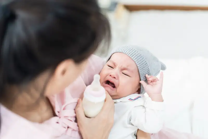 Bayi dapat menangis akibat perut kembung, sering bersendawa, atau sulit buang air besar. Kondisi ini dapat menyebabkan bayi merasa tidak nyaman, terutama setelah menyusu.