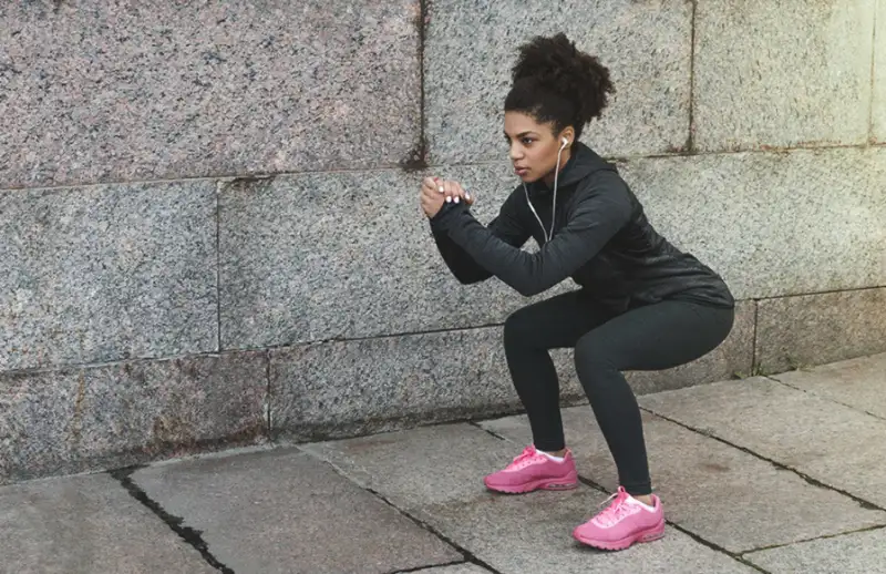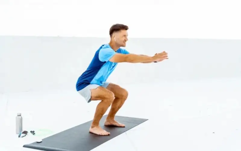 -Bodyweight squat (tanpa alat): ideal untuk pemula atau latihan di rumah