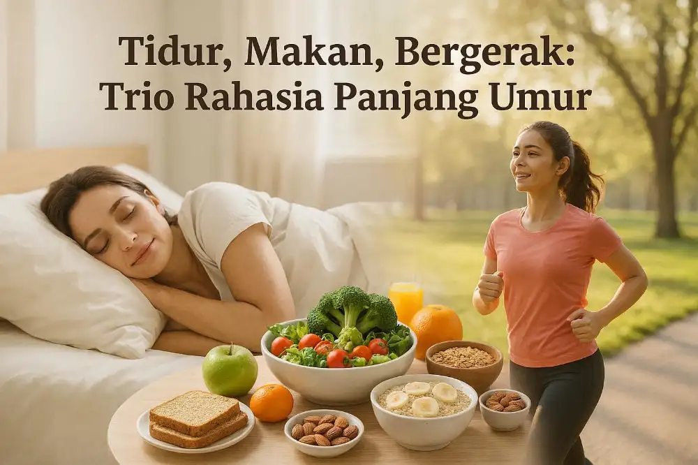 Di tengah gaya hidup modern yang serba cepat, banyak orang mencari rahasia untuk bisa panjang umur. Padahal, kuncinya bukan pada tren kesehatan terbaru atau suplemen mahal, melainkan tiga hal sederhana yang sering kita abaikan: tidur yang cukup, makan dengan bijak, dan bergerak secara teratur. Yuk, kita bahas lebih lanjut!