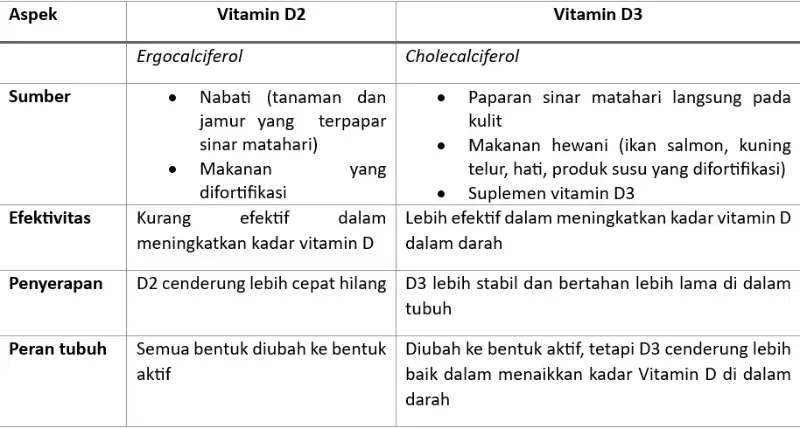 Namun perlu diingat bahwa kedua bentuk ini bisa membantu menaikkan kadar vitamin D, dan pilihan terbaik tetap tergantung pada kebutuhan individu serta saran dokter.